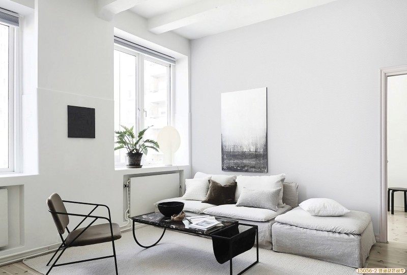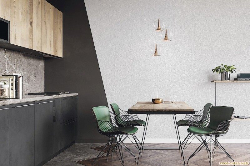 Mẫu giấy dán tường màu xám làm nổi bật lên phong cách kiến trúc đơn giản nhưng đầy tinh tế.