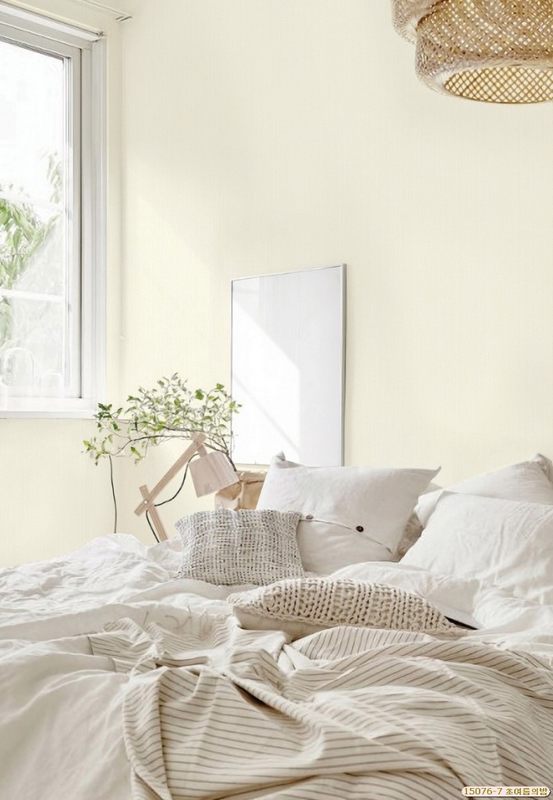 Không gian phòng ngủ trở nên nhiều sức sống và bắt được nhiều ánh sáng hơn với giấy dán tường màu vàng nhạt như thế này