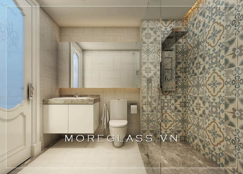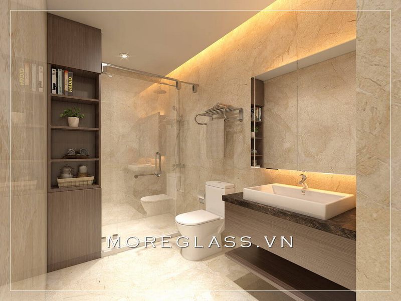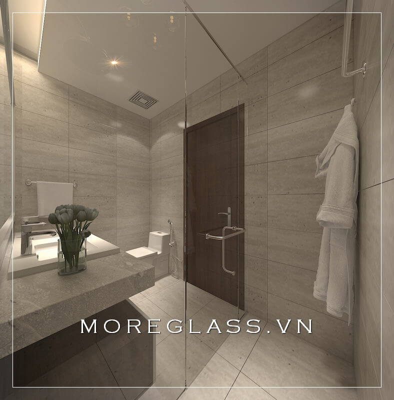 Mẫu thiết kế phòng tắm nhỏ được trang bị nội thất, thiết bị vệ sinh hiện đại và đơn giản để phù hợp với phòng ngủ của căn hộ, nhà phố.